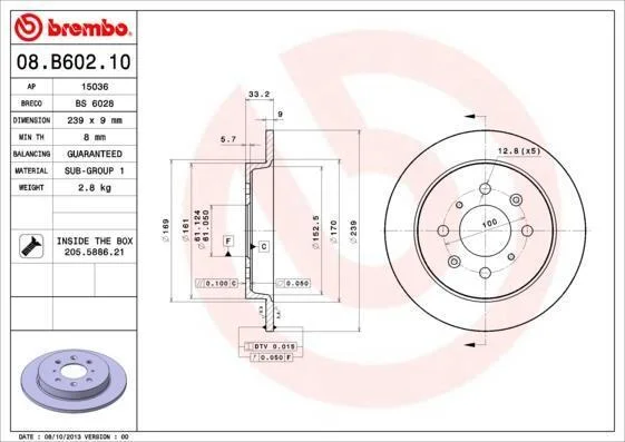 - BREMBO 08.B602.10 підходить до марок/моделей авто: