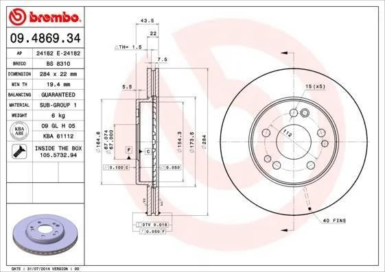 - BREMBO 09.4869.34 підходить до марок/моделей авто: