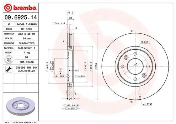 Аналоги "09.6925.14 BREMBO":