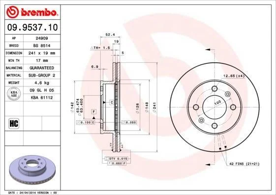 Аналоги "09.9537.10 BREMBO":