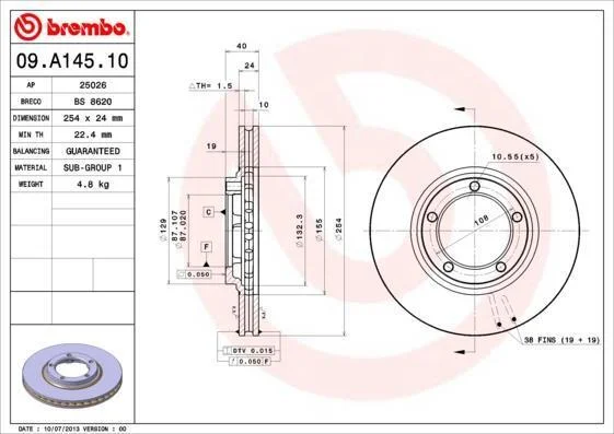 Гальмівний диск BREMBO 09.A145.10