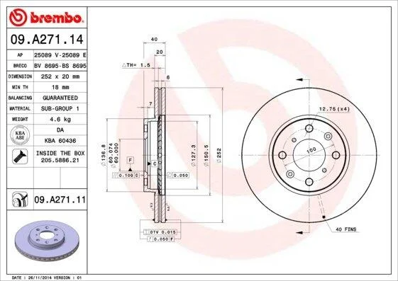 Диск гальмівний BREMBO 09.A271.14