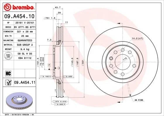 - BREMBO 09.A454.11 підходить до марок/моделей авто: