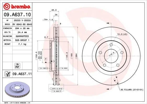 - BREMBO 09.A637.10 підходить до марок/моделей авто: