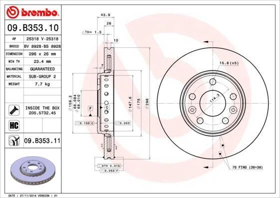 - BREMBO 09.B353.10 підходить до марок/моделей авто: