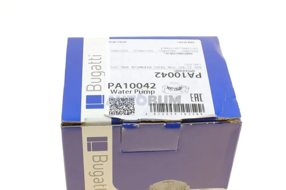 Помпа системи охолодження Audi A2/Seat Leon/Toledo/VW Golf/Jetta/Polo/Bora 1.6 16V/1.6FSI 98-05 (B/B BUGATTI PA10042