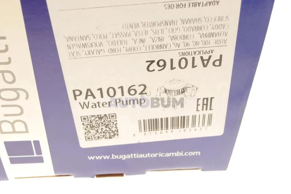 Помпа системи охолодження Audi/Seat/VW 1.3-2.0/1.6-2.0i/1.6-1.9D/TD/SDI/1.8GTI/2.0E 78-03 (R/B) (6 л BUGATTI PA10162