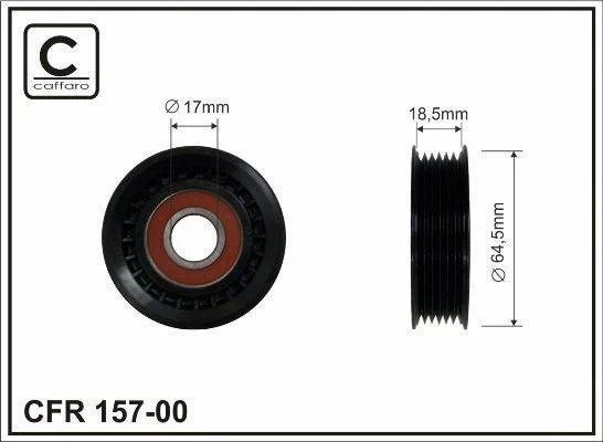 Ролик проміжний поліклинового ремня Mercedes A W168/W169/B W245/Vaneo 414 1.4-2.1 07.97-06.12 64x17x18,5 CAFFARO 15700