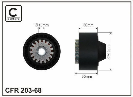 Ролик проміжний поліклинового ремня Renault Clio/III/IV/Modus/Twingo II/Wind 1.2/1.2ALK/1.2LPG 12.04- 60x10x30 CAFFARO 20368