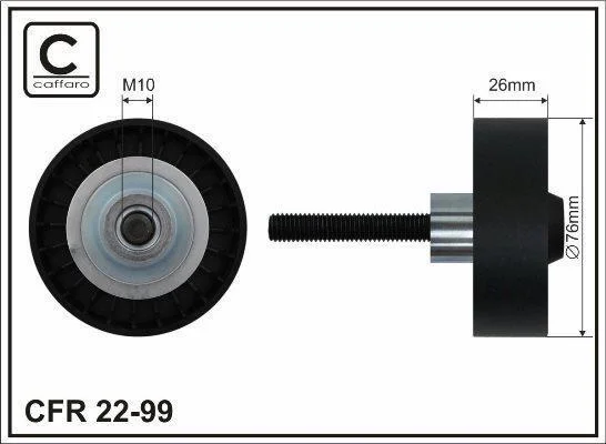 Ролик проміжний поліклинового ремня Audi A1/A3, Seat Altea/XL/Cordoba/Ibiza III/IV/Leon/Toledo IV, Skoda Fabia II/Octavia II/Rapid/Roomster/Superb II 1.4/1.6/1.6LPG 02.02- 76x10x26 CAFFARO 2299