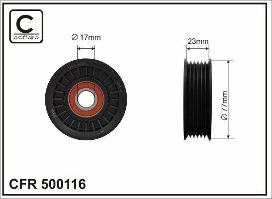 Ролик натяжного механізму поліклинового ремня Buick Century/Regal/Skylark, Chevrolet Alero/Beretta/Impala/Lumina/APV/Trans Sport 3.1/3.4 10.93-09.06 77x17x23 CAFFARO 500116