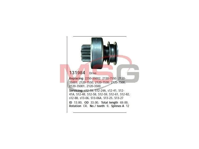 Бендикс стартера CARGO 131984