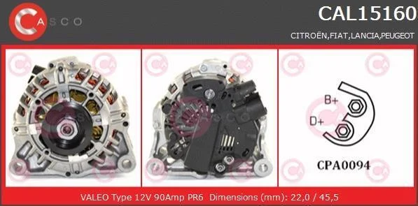 - CASCO CAL15160AS підходить до марок/моделей авто: