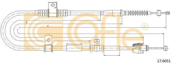 Трос ручного гальма зад. KIA CERATO 04- (-ABS) Пр. (1560/1386) COFLE 176051