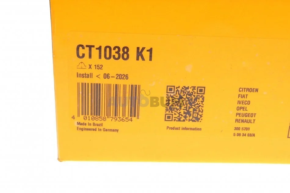 - Contitech CT1038K1 підходить до марок/моделей авто:
