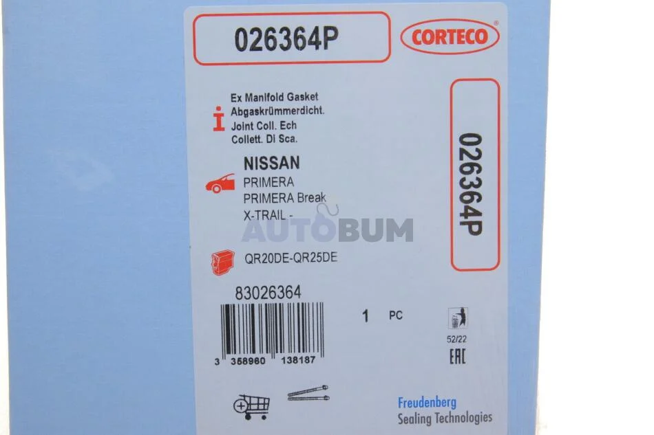 Прокладання випускної системи NISSAN X-TRAIL I (T30), 01/01 - 12/13 CORTECO 026364P