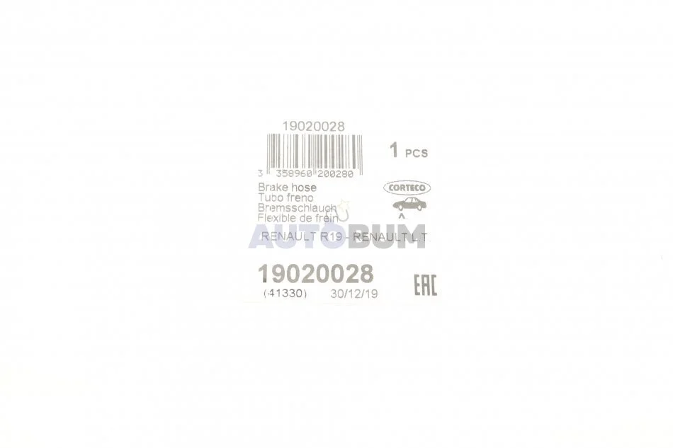 Шланг гальмівний CORTECO 19020028