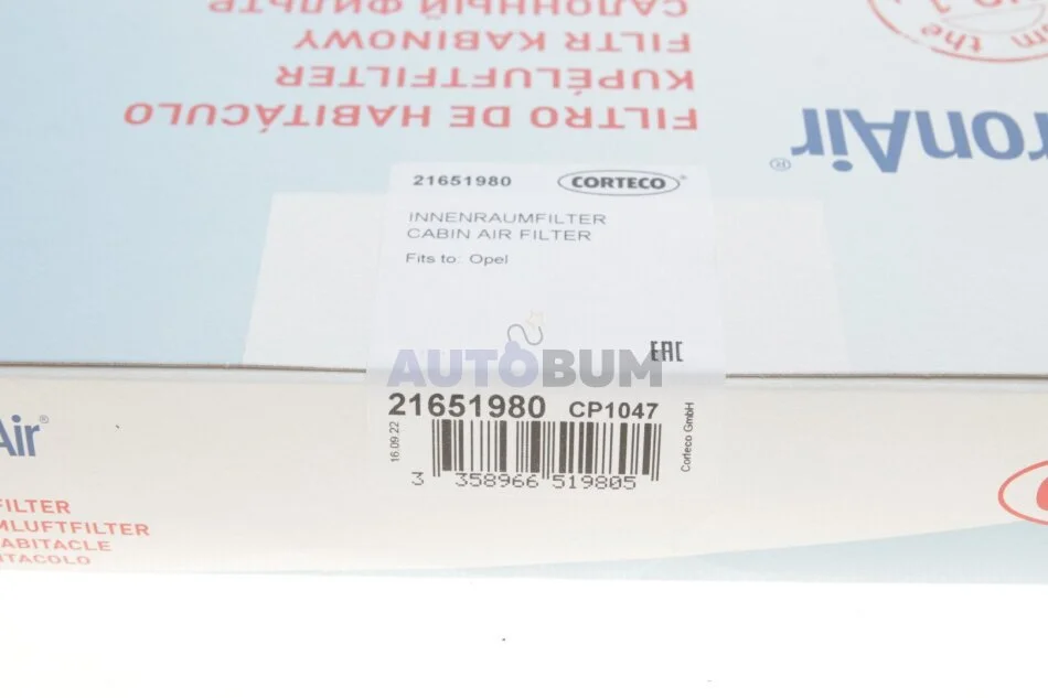 Фільтр салону CORTECO 21651980