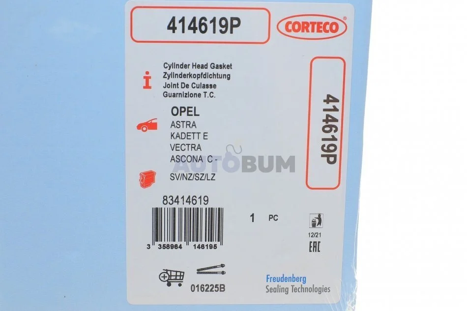 - CORTECO 414619P підходить до марок/моделей авто: