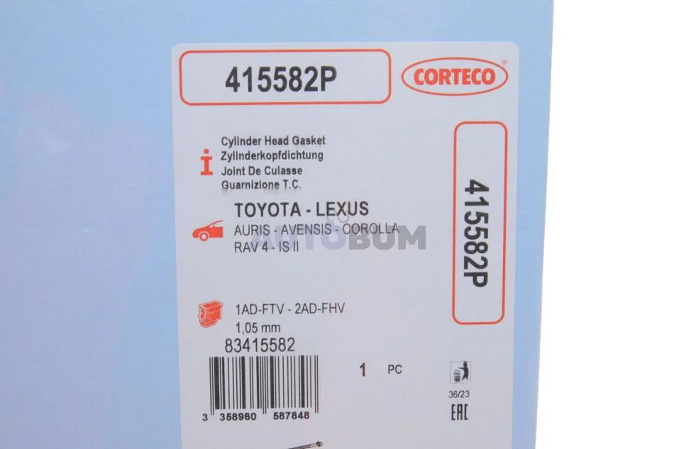 TOYOTA прокладка гбц 4К 1,05 мм AURIS, AVENSIS, RAV 4 IV, VERSO -18, LEXUS IS II -12 CORTECO 415582P