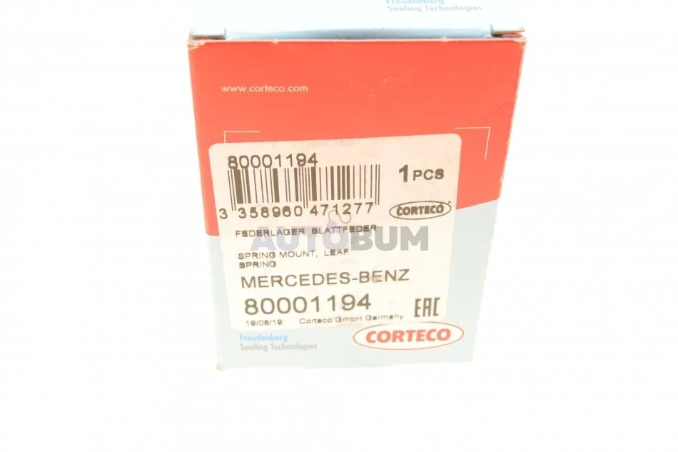 Сайлентблок ресори задн лів/прав (12мм/38мм) MERCEDES T1 (601), T1 (601, 611), T1 (602), T1 (B601), T1 (B602), T1/TN, T2/L 2.3-3.0D 01.75-02.96 CORTECO 80001194