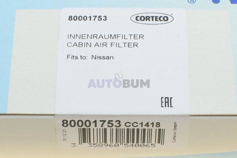 Повітряний фільтр салону CORTECO 80001753