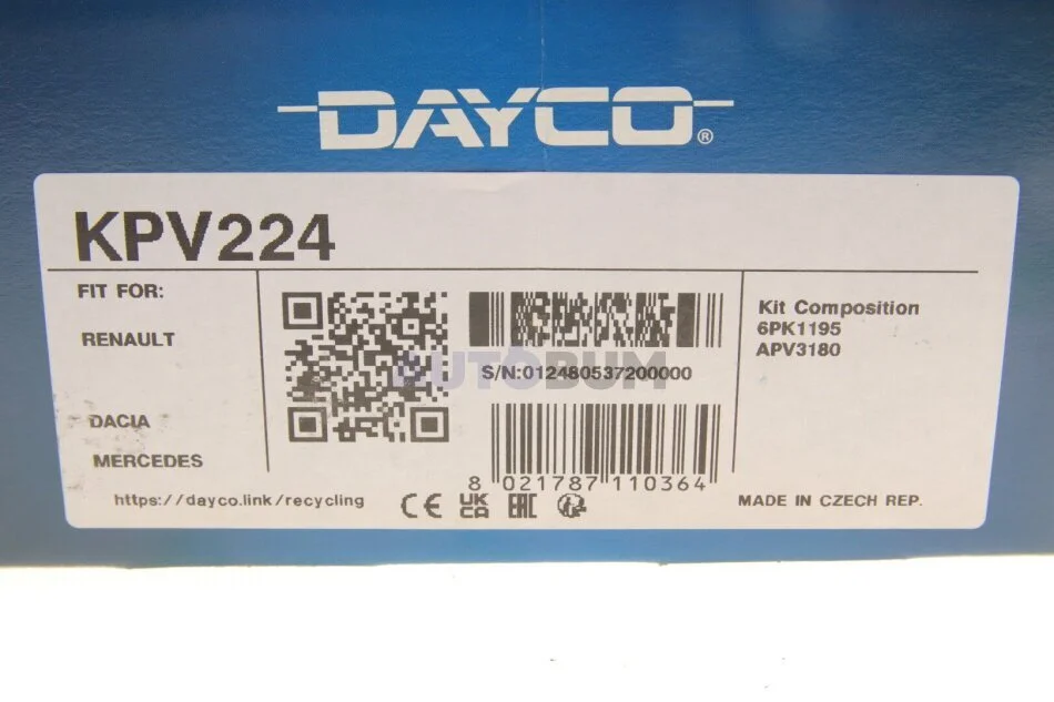 - DAYCO KPV224 підходить до марок/моделей авто: