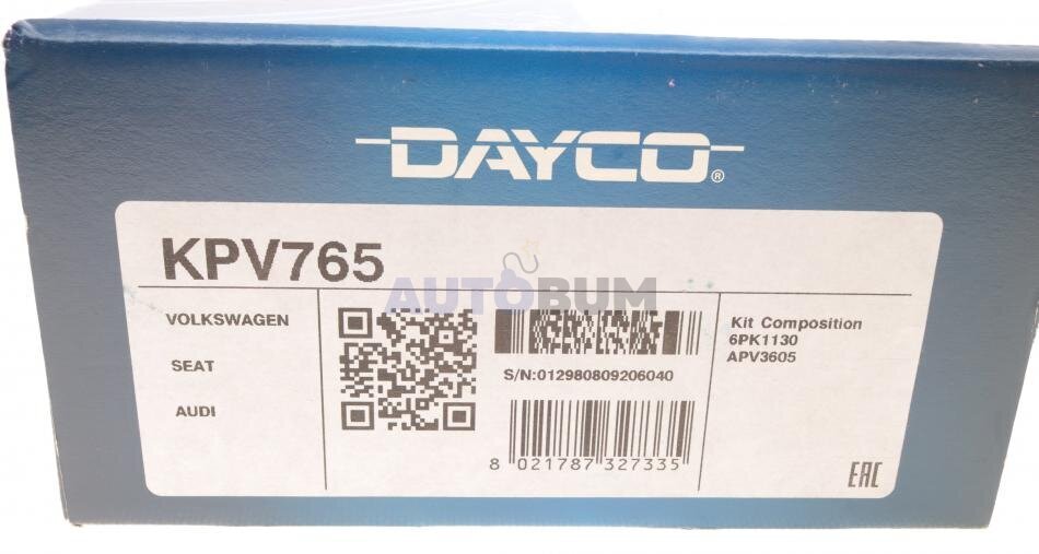 - DAYCO KPV765 підходить до марок/моделей авто:
