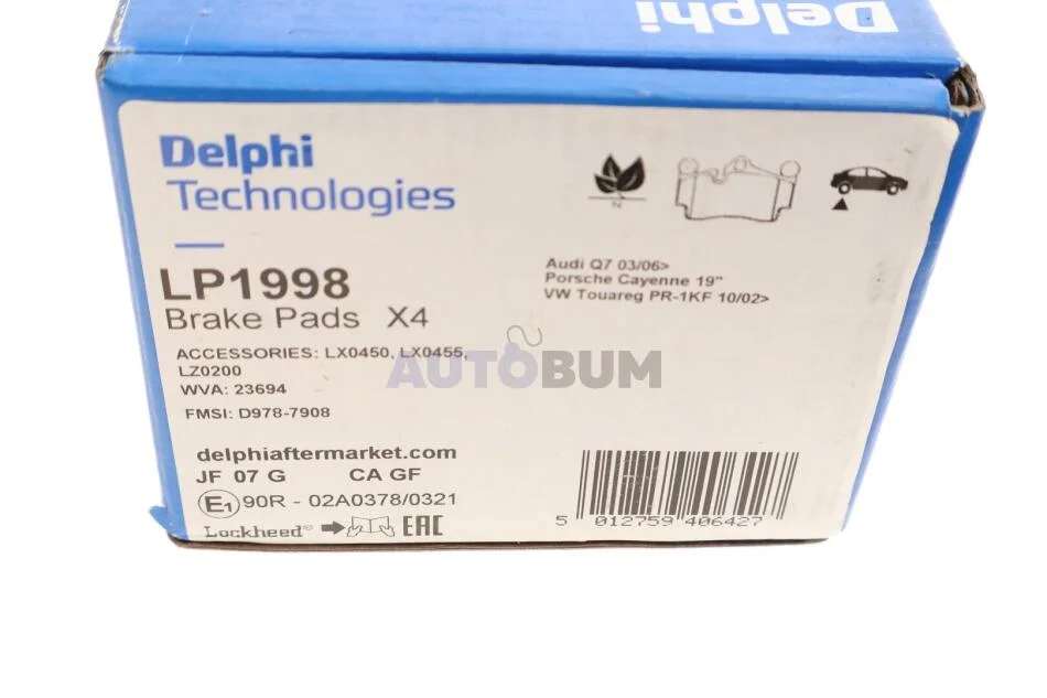 Гальмівні колодки дискові AUDI/PORSCHE/VW Q7/Cayenne/Touareg "R "04-15 Delphi LP1998