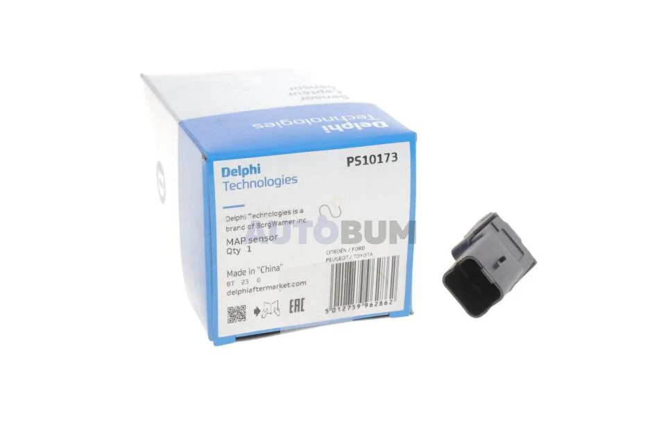 Датчик тиску у впускному колекторі (3 pin) CITROEN C1, C2, C2 ENTERPRISE, C3 I, C3 II, C3 PLURIEL, C5 I, C5 II, C5 I/KOMBI, C8, JUMPY I, NEMO, NEMO/MINIVAN, XANTIA FIAT SCUDO 1.4D-2.2D 06.98- Delphi PS10173
