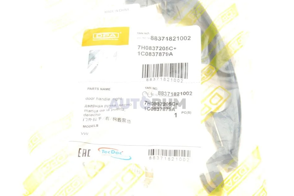 Ручка зовнішня двері правої VW Touran (03-15), T5 (03-19) DPA 88371821002