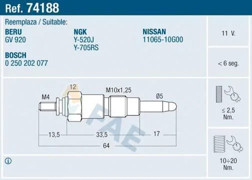 Свічки накалу/свічки нагріву FAE 74188