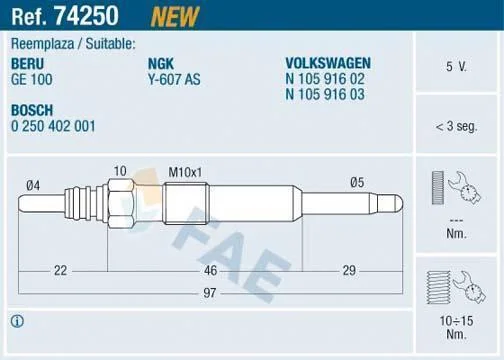 Свічки накалу/свічки нагріву FAE 74250