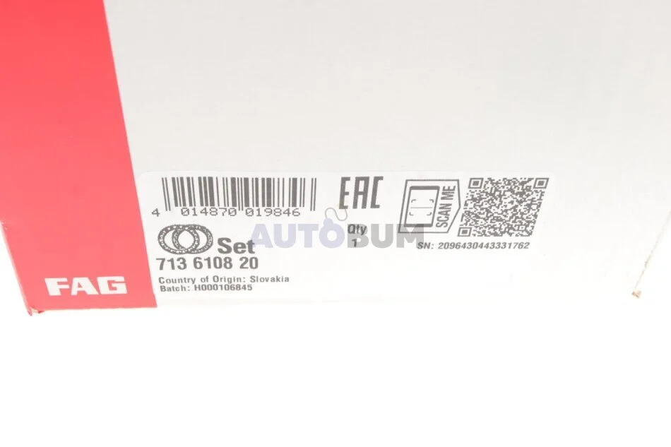 Підшипник маточини (комплект) FAG 713 6108 20