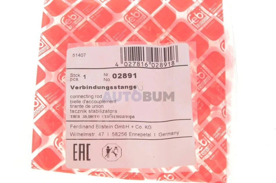 - FEBI BILSTEIN 02891 підходить до марок/моделей авто: