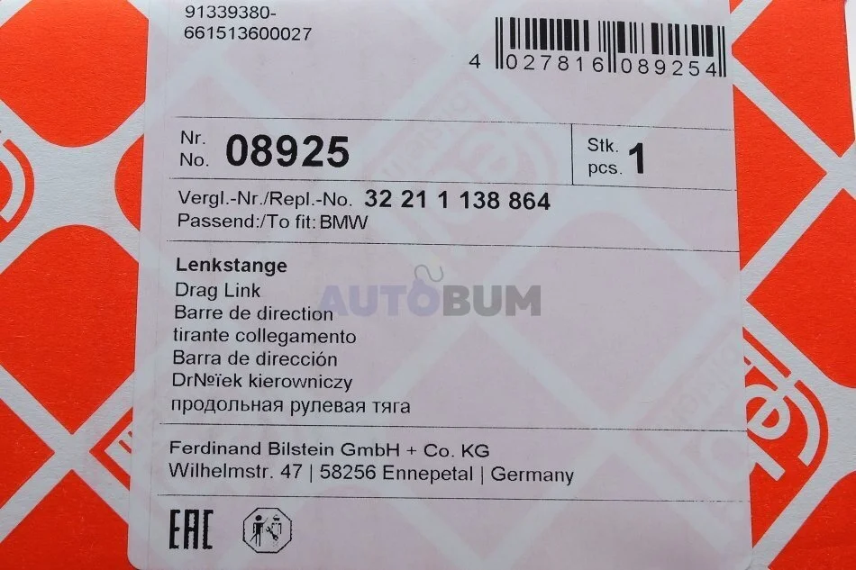 - FEBI BILSTEIN 08925 підходить до марок/моделей авто: