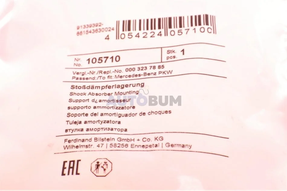 Втулка амортизатора задн Лів/Прав MERCEDES SPRINTER 2-T (B901, B902), T1 (601), T1 (601, 611), T1 (602), T1 (B601), T1 (B602) 2.1D-3.0D 04.77-05.06 FEBI BILSTEIN 105710