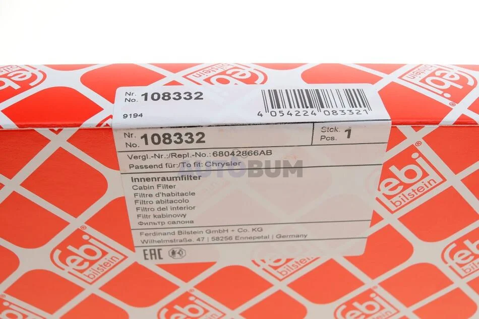 Змінний фільтруючий елемент повітряного фільтра салону FEBI BILSTEIN 108332