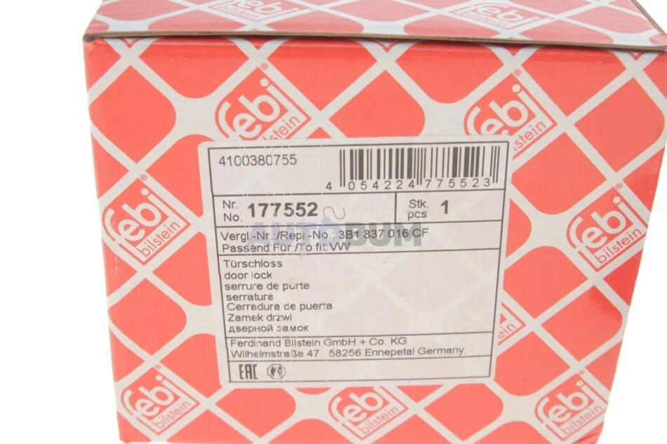 Замок двері передн Прав SEAT LEON, TOLEDO II VW BORA, BORA I, CALIFORNIA T5 CAMPER, GOLF IV, MULTIVAN T5, NEW BEETLE, PASSAT B5, PASSAT B5.5, TRANSPORTER T5 08.96-08.15 FEBI BILSTEIN 177552