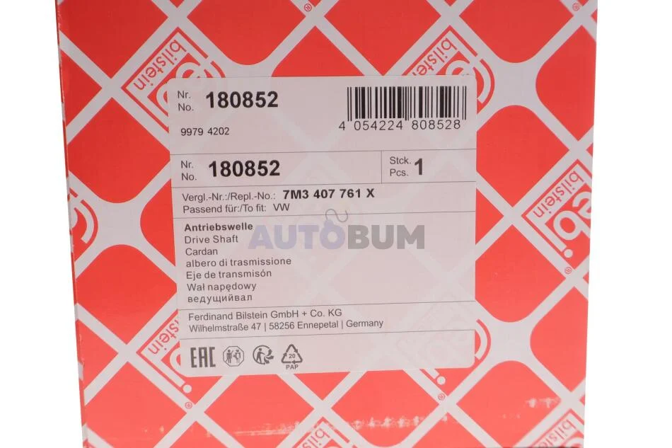 - FEBI BILSTEIN 180852 підходить до марок/моделей авто: