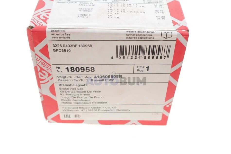 - FEBI BILSTEIN 180958 підходить до марок/моделей авто: