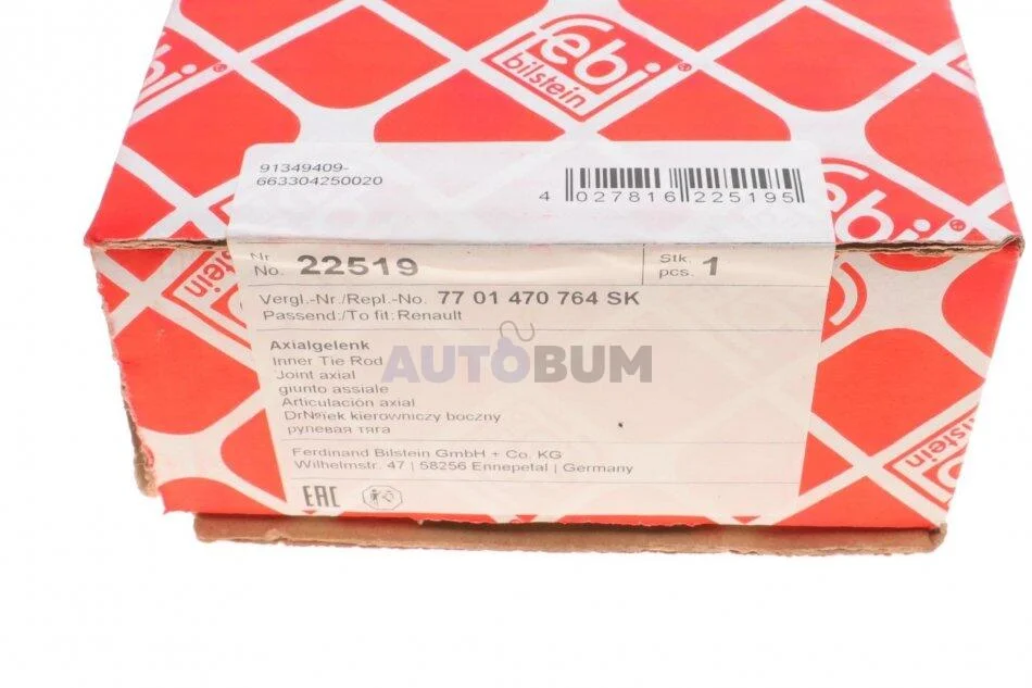 - FEBI BILSTEIN 22519 підходить до марок/моделей авто: