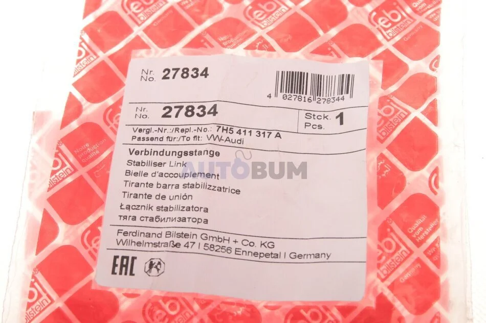 - FEBI BILSTEIN 27834 підходить до марок/моделей авто: