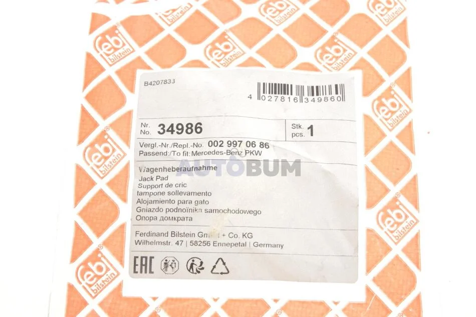 - FEBI BILSTEIN 34986 підходить до марок/моделей авто:
