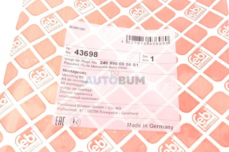 - FEBI BILSTEIN 43698 підходить до марок/моделей авто: