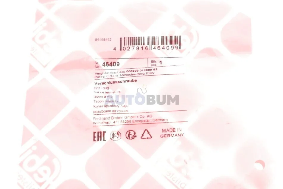 Пробка зливу мастила FEBI BILSTEIN 46409