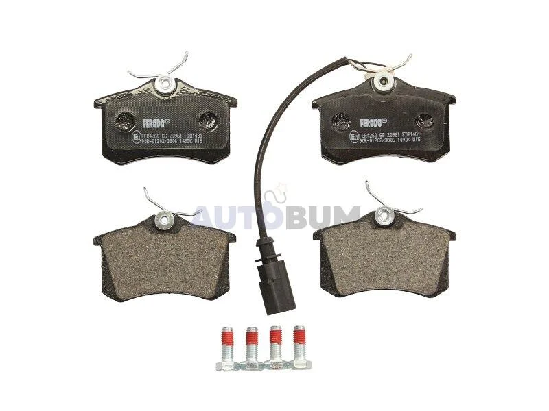 Комплект гальмівних колодок задн (з комплектуючими з гвинтами гальмівного супорта), AUDI A4 B5 FORD GALAXY I, GALAXY MK I SEAT ALHAMBRA SKODA OCTAVIA I, SCALA VW POLO VI 1.4-2.8 03.95- FERODO FDB1481