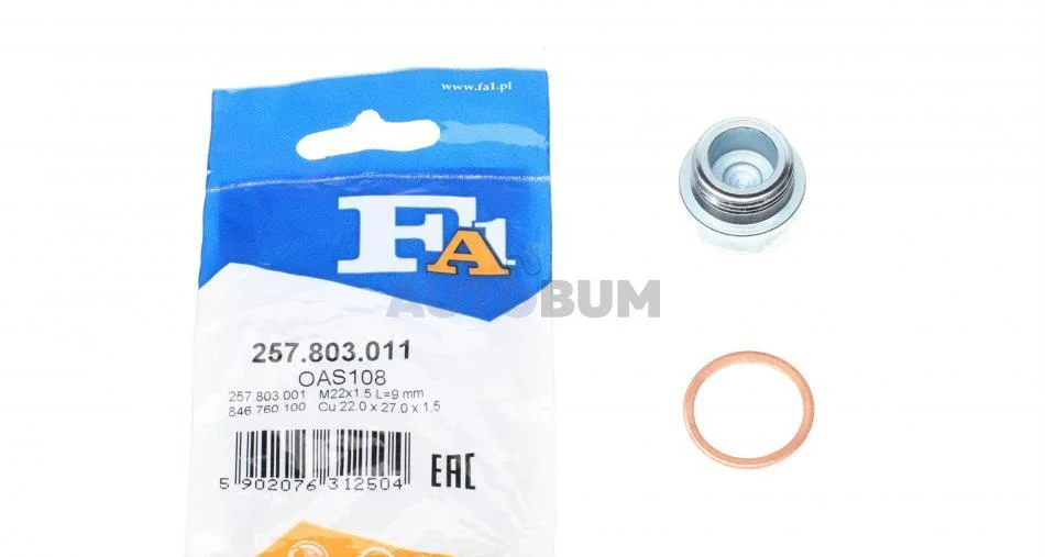 FISCHER OPEL Масляная пробка + шайба M22x1.5 L=9 SW22 ARENA Combi 2.5 D 98-, MOVANO A 2.5 98-, FORD, RENAULT Fischer Automotive One (FA1) 257.803.011