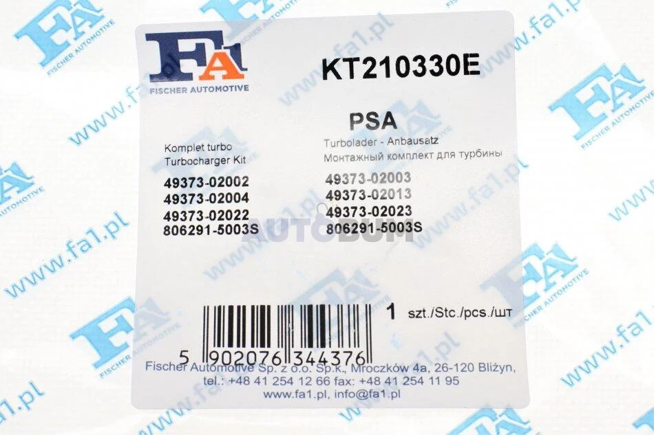 Аналоги "KT210330E Fischer Automotive One (FA1)":