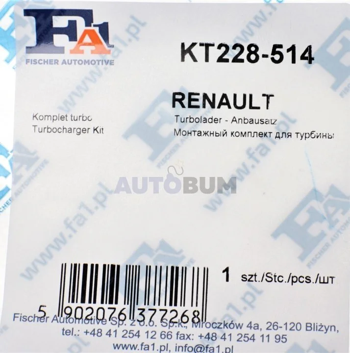 - Fischer Automotive One (FA1) KT228-514 підходить до марок/моделей авто: